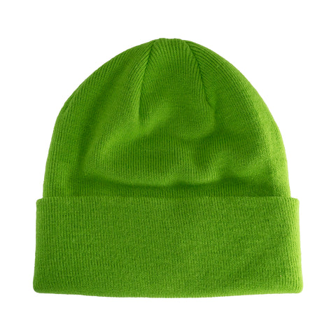 100% Acrylic fine knit cuffed beanie with double sided woven pinch label.